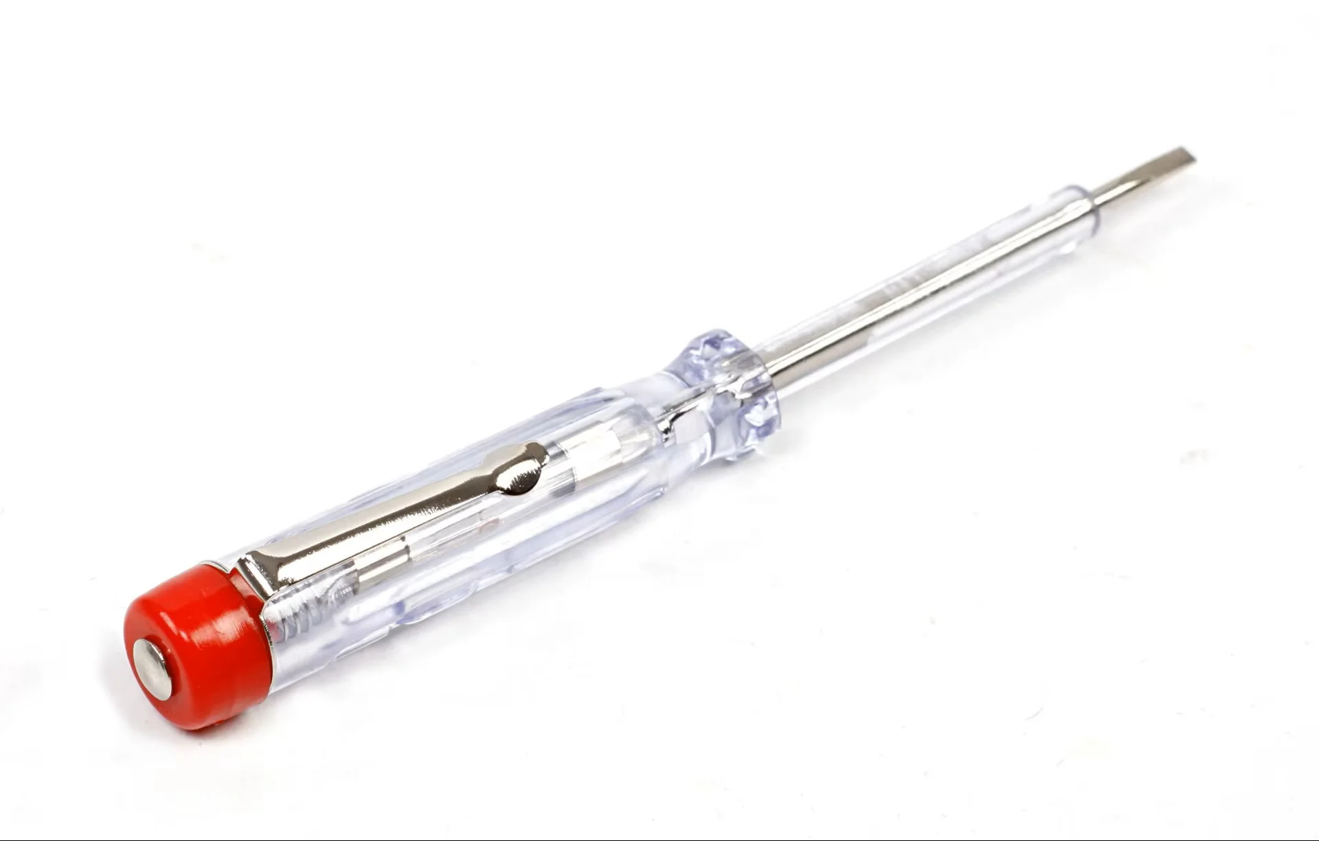 מברג טסטר חשמלי עם נורת בדיקה מובנית לזיהוי מתח חשמלי.