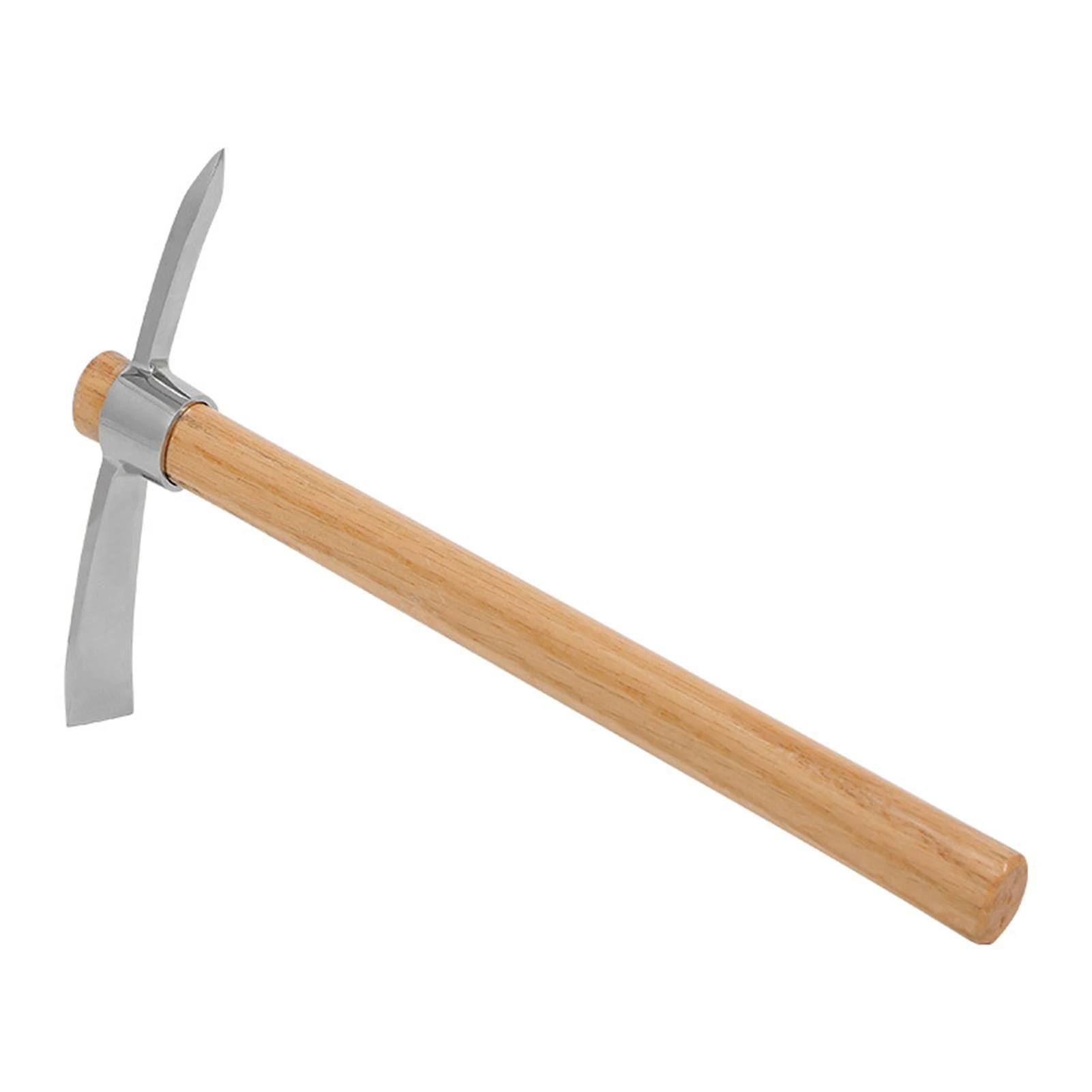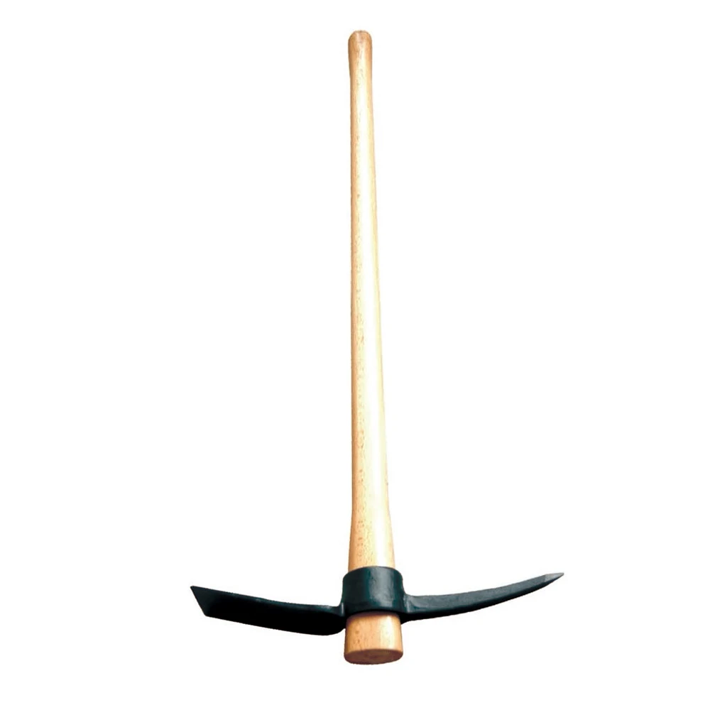מכוש עבודה חזק עם ידית עץ ארוכה ונוחה.
