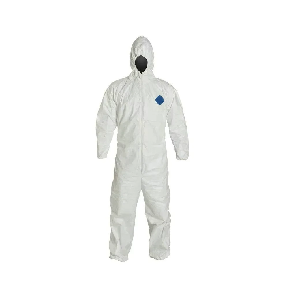 עשוי בד לא ארוג, נושם ועמיד, עם רוכסן קדמי, כיסוי ראש וגומיות בידיים וברגליים.